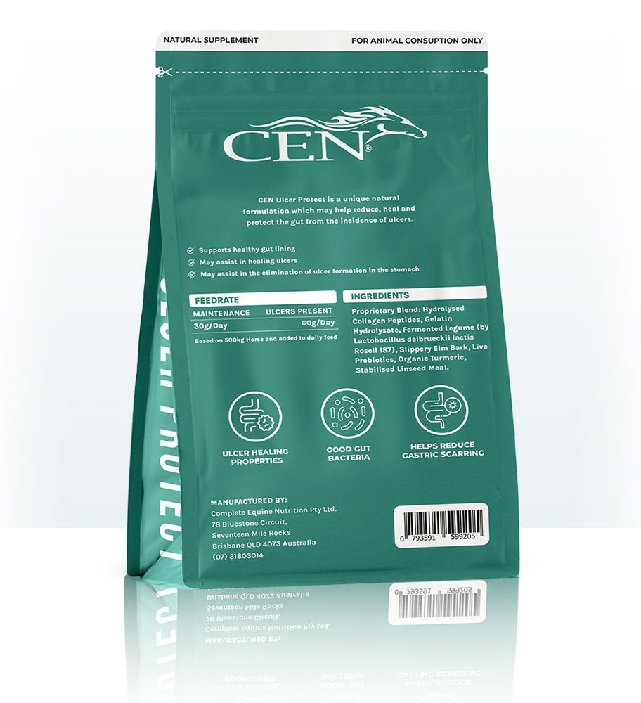 A unique natural ulcer supplement for horses featuring a formulation that may assist reduce, heal and protect the stomach from the incidence of ulcers. Using high-quality natural ingredients does not inhibit the natural acid pump action as stomach acid is essential for protein digestion and absorption of vitamins and minerals.