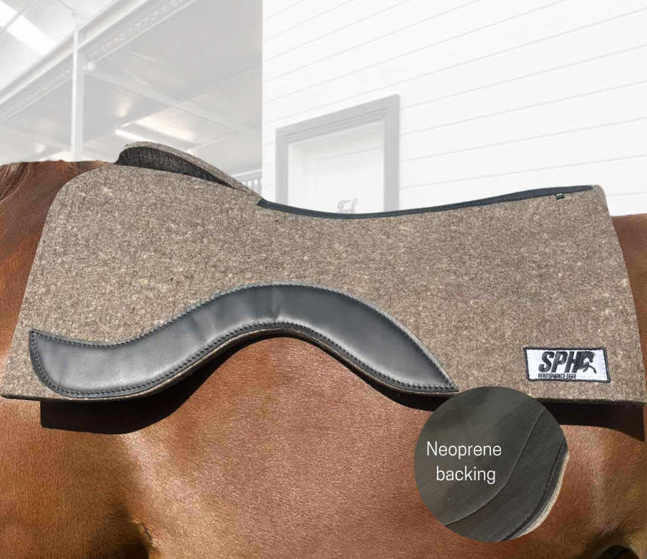 We recommend wool backed pads for long rides or if a horse is saddled for long periods of time, especially in hot and humid weather.